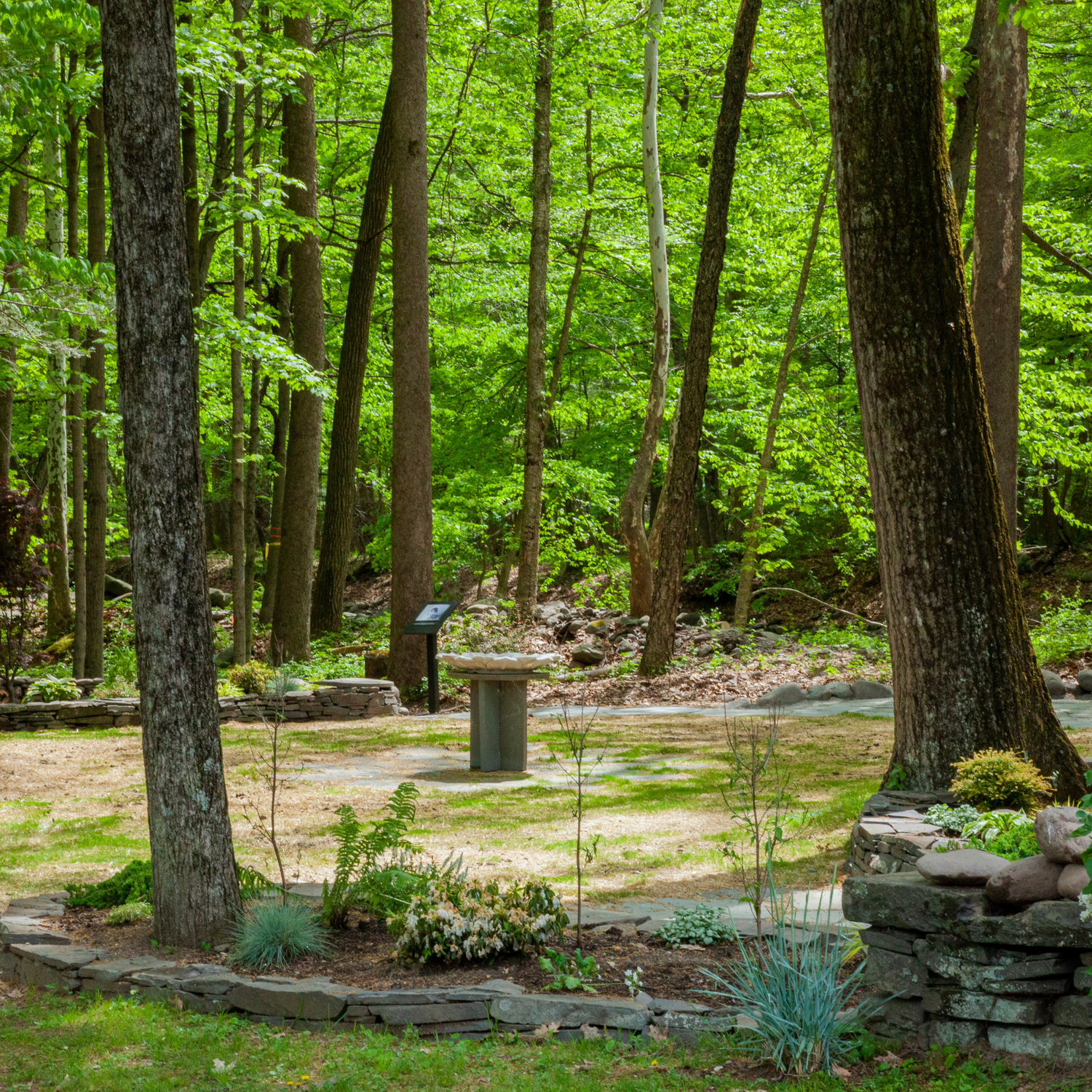 Step into the peaceful embrace of Bearsville Park's Celebration Garden, surrounded by native trees and shrubs, with the tinkling soundtrack of woodland birdsong, this special place on the edge of the Park is much beloved by many.