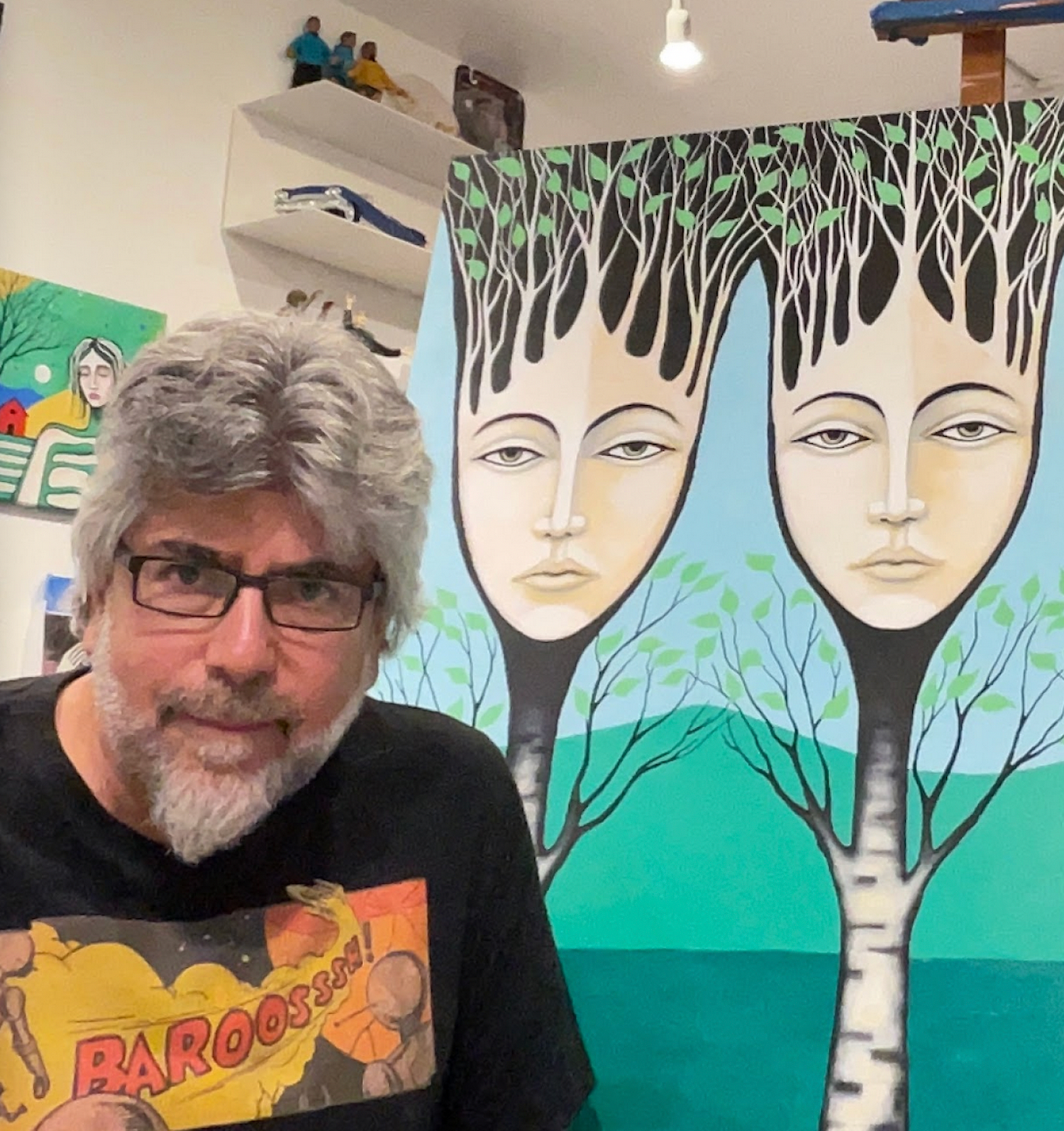 We are thrilled to feature Bryan Perrin, a multifaceted American artist known for his vibrant career as a painter, sculptor, illustrator, and performer. With a BFA in painting from Ohio University, Bryan has spent decades honing his craft and sharing his talents in galleries, schools, art camps, and private collections across the country. His journey has taken him from the art circles of Toledo and Cocoa Beach to Jersey City and Woodstock, where he has worked as both a scenic artist and decorative finish painter.