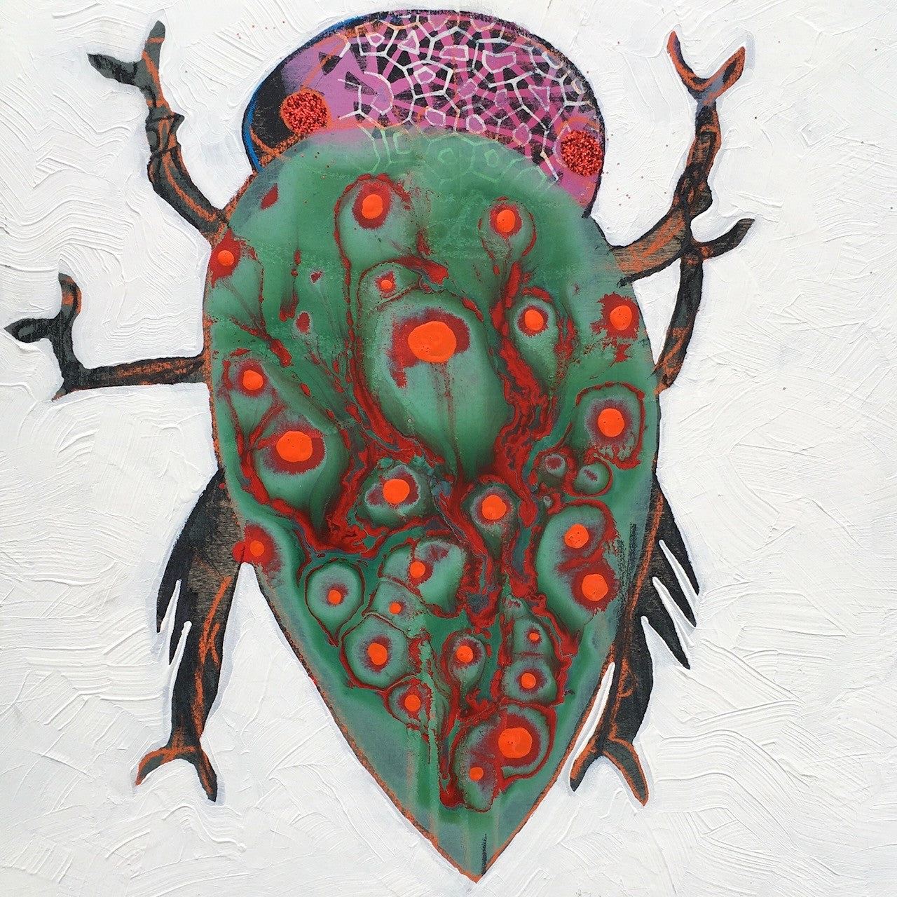 Sui Jenneris' art, marked by striking visuals and joyful compositions, reflects her unique upbringing and creative journey. Raised in Kingston, NY, by a tattoo artist parent, she was immersed in punk rock culture and imaginative thinking from an early age. This background has deeply influenced her distinctive artistic style and cultural outlook, bringing boldness and originality to her work.